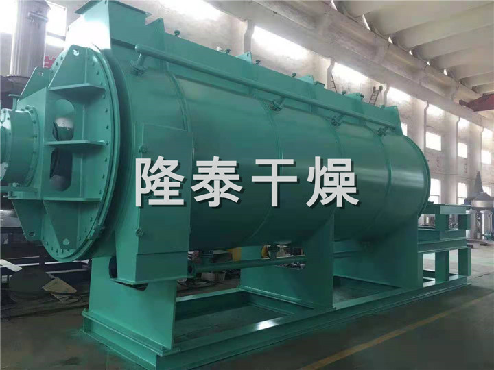 圆盘干燥机与其他间接干燥设备相比具有,传热面积大,搅拌效果好,更能促进水分的蒸发和去除等优点,是新开发的一款改良型简接加热干燥机。转盘式干燥机主要是由定子(外壳),转子(转盘)和驱动装置组成。转子中心轴是干化转盘的承载部件,它是一个中空轴,所有的转盘焊接在这个空轴上。圆盘干燥机通过转盘边缘的推进/搅拌器的作用,污泥被均匀缓慢地输送通过整个干燥机,并通过与转盘的热接触被干化。在干化过程中,热蒸汽冷凝在转盘腔的内壁上,形成冷凝水。冷凝水通过一个管子被导入中心管,^终通过导出槽导出干燥机。在每两片转盘之间装有刮刀,刮刀固定在外壳(定子)上。刮刀可以疏松盘片间的污泥,使废蒸汽快速离开污泥。干燥机的传热介质一般是0.2Mpa~0.6Mpa的饱和蒸汽。圆盘式干燥机每片转盘由两个对扣的圆盘焊接而成。中心轴内腔与所有转盘内腔相连通。为了提高转盘的坚固性,空心转盘内腔分部着许多支撑杆,支撑杆两端支撑着左右两个圆盘。根据所干化物料性质的不同,转盘可以采用低碳钢,不锈钢,或特殊合金钢制造。在转盘边缘装有推进/搅拌器,它们有两个功能:一是推进输送物料,二是搅拌混合物料。推进器的倾角是可以调整的,转盘的内腔可以通入中低压蒸汽,导热油或高压热水传递干化产品所需热量。