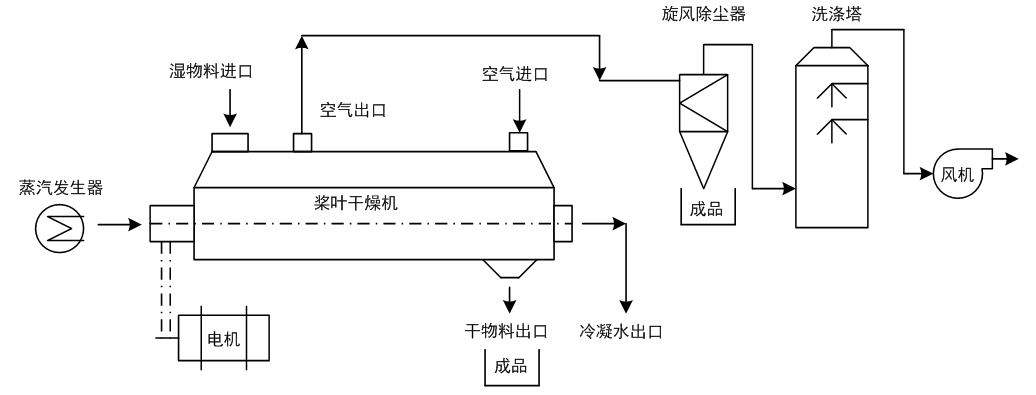 ◎浆叶干燥机能耗低: 由于间接加热,没有大量携带空气带走热量,干燥器外壁又设置保温层,对浆状物料,蒸发1kg水仅需1.2kg水蒸汽。