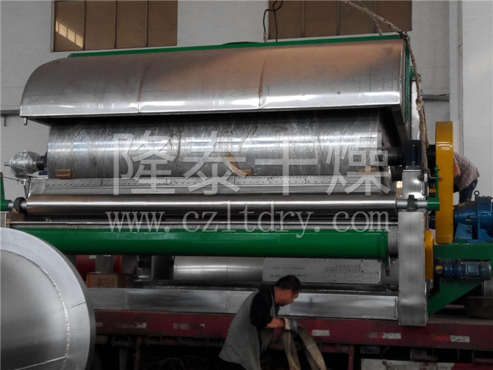 4、干燥时间短:物料的干燥周期一般只有10-300秒,在适合于热敏性物料。若将滚筒干燥机设置在真空器中,则可在减压条件下运行。