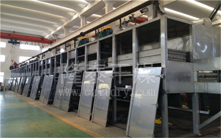 ④干燥物料随同传送带移动时,物料颗粒间的相对位置比较固定,具有基本相同的干燥时间,对于物料色泽变化或含水率要求均匀的某些干燥过程来说,非常适合,此外,物料在设备里受到的振动和冲击很轻微,物料颗粒不易破碎,因此也适合干燥某些不允许破碎的物料。